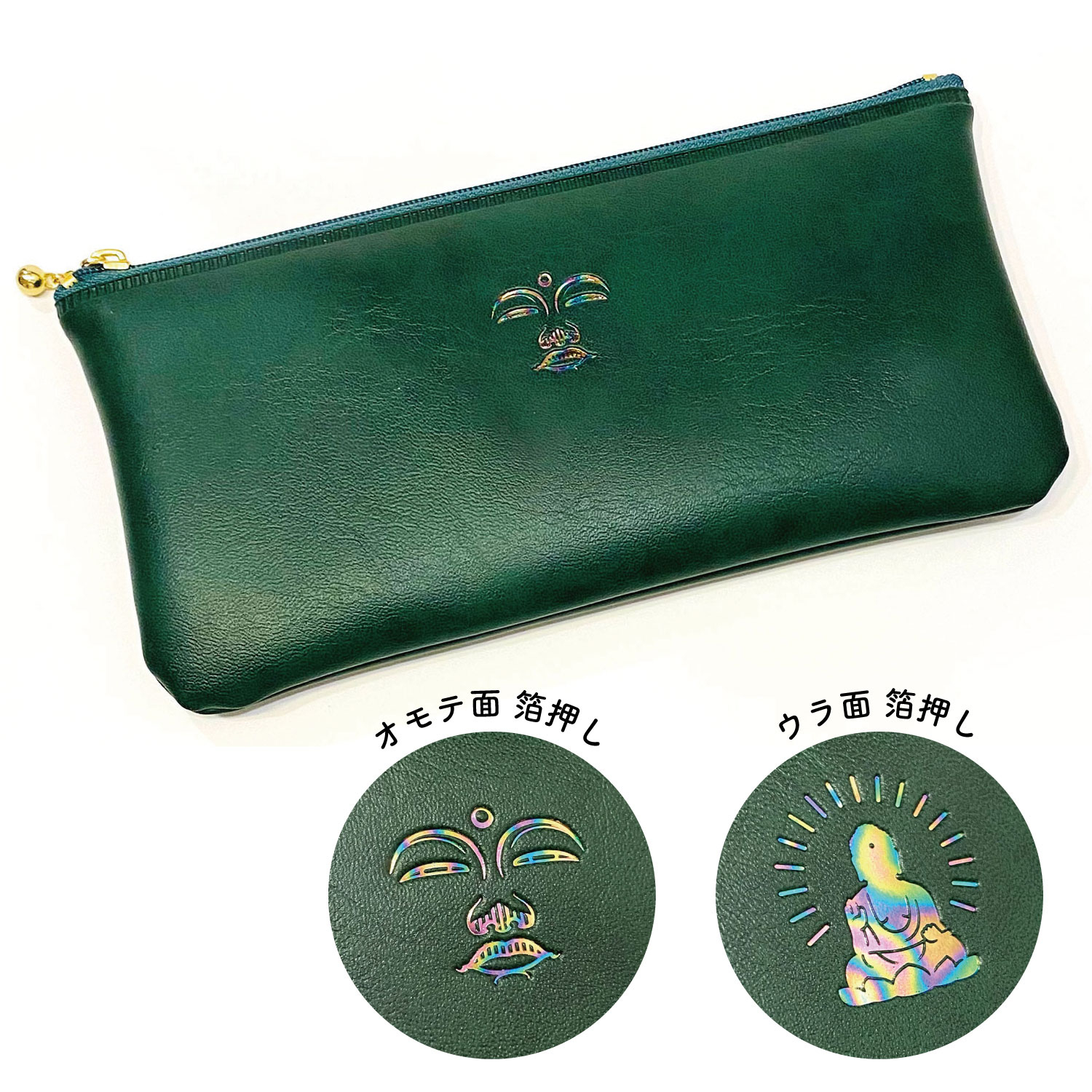オモテもウラも大仏様のワンポイントレインボー箔がキラッと光るフラットペンケースです。