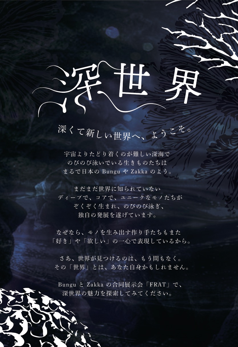 At the joint exhibition “FRAT” of Bungu and Zakka, please explore the charm of the deep world.