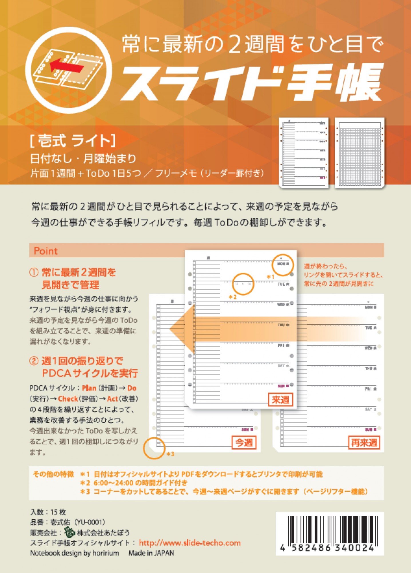じゃばら型システム手帳リフィル。