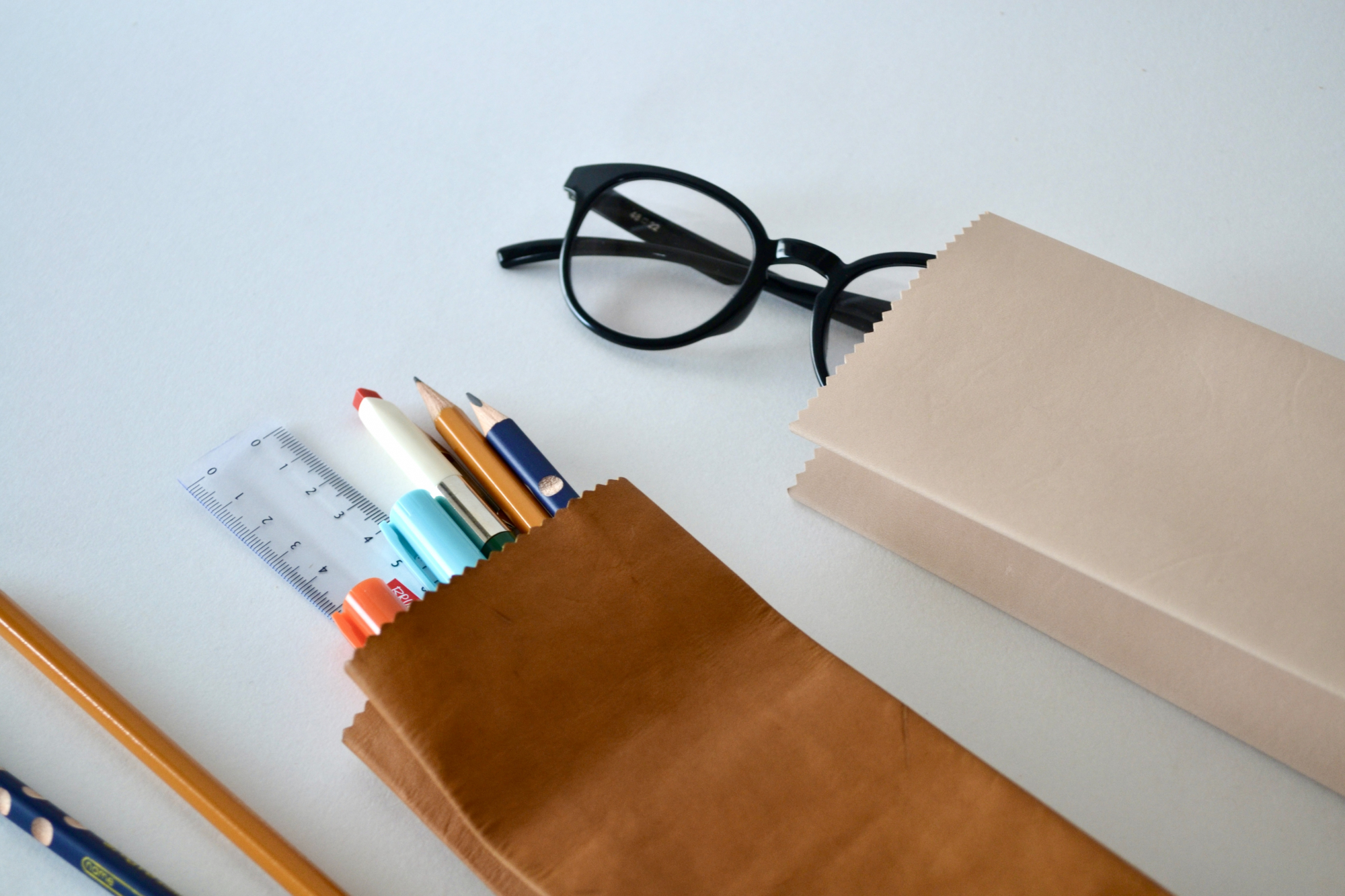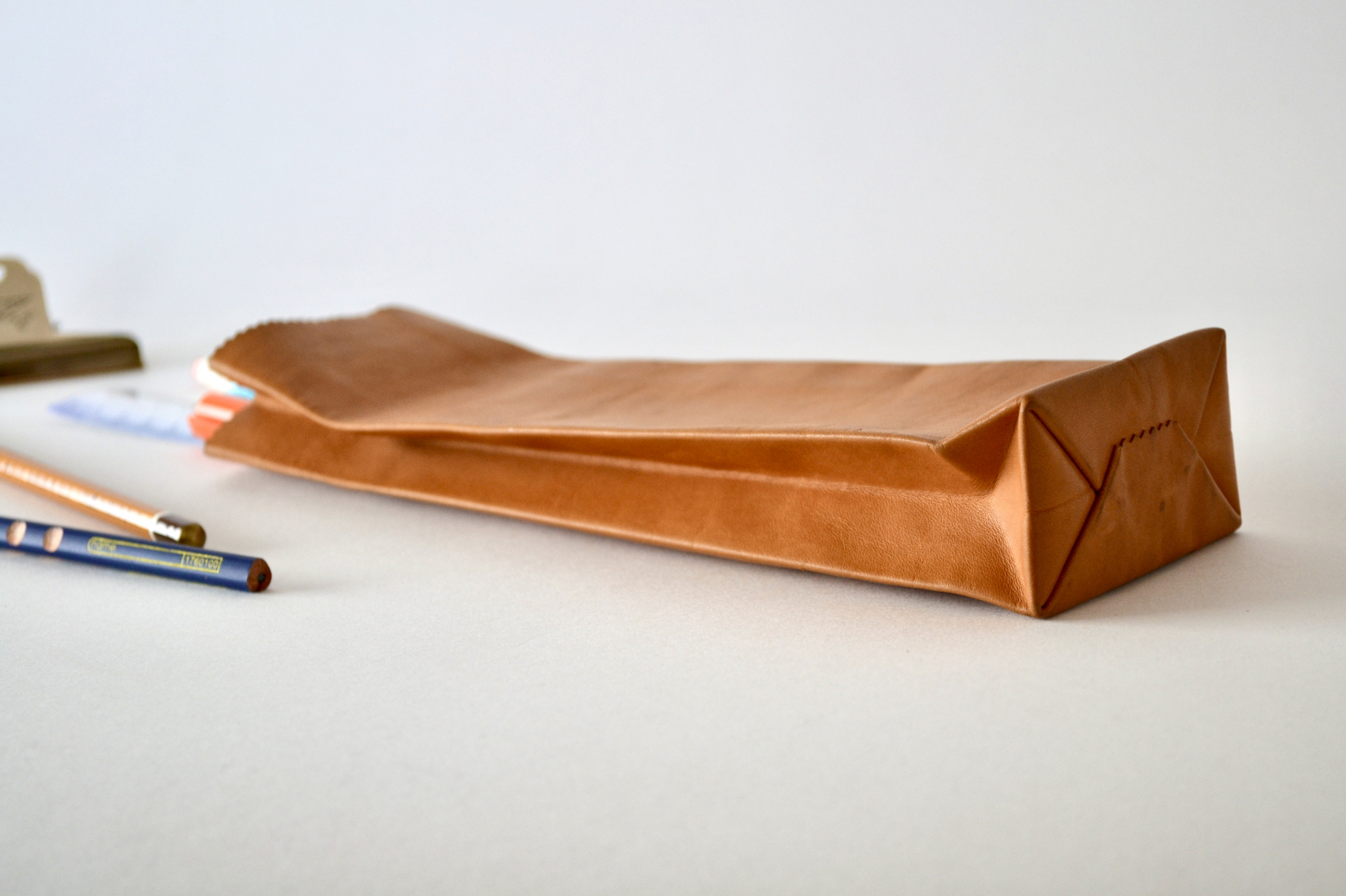 A pouch made from vegetable-tanned cowhide leather, thinned to 0.5mm.