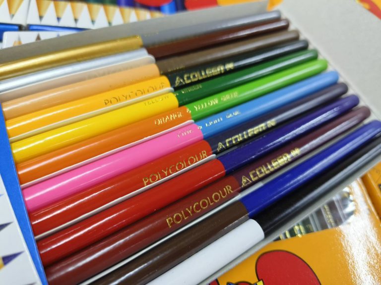 常夏の楽園タイランドで三角顔マークのコーリンの色鉛筆を作っています。