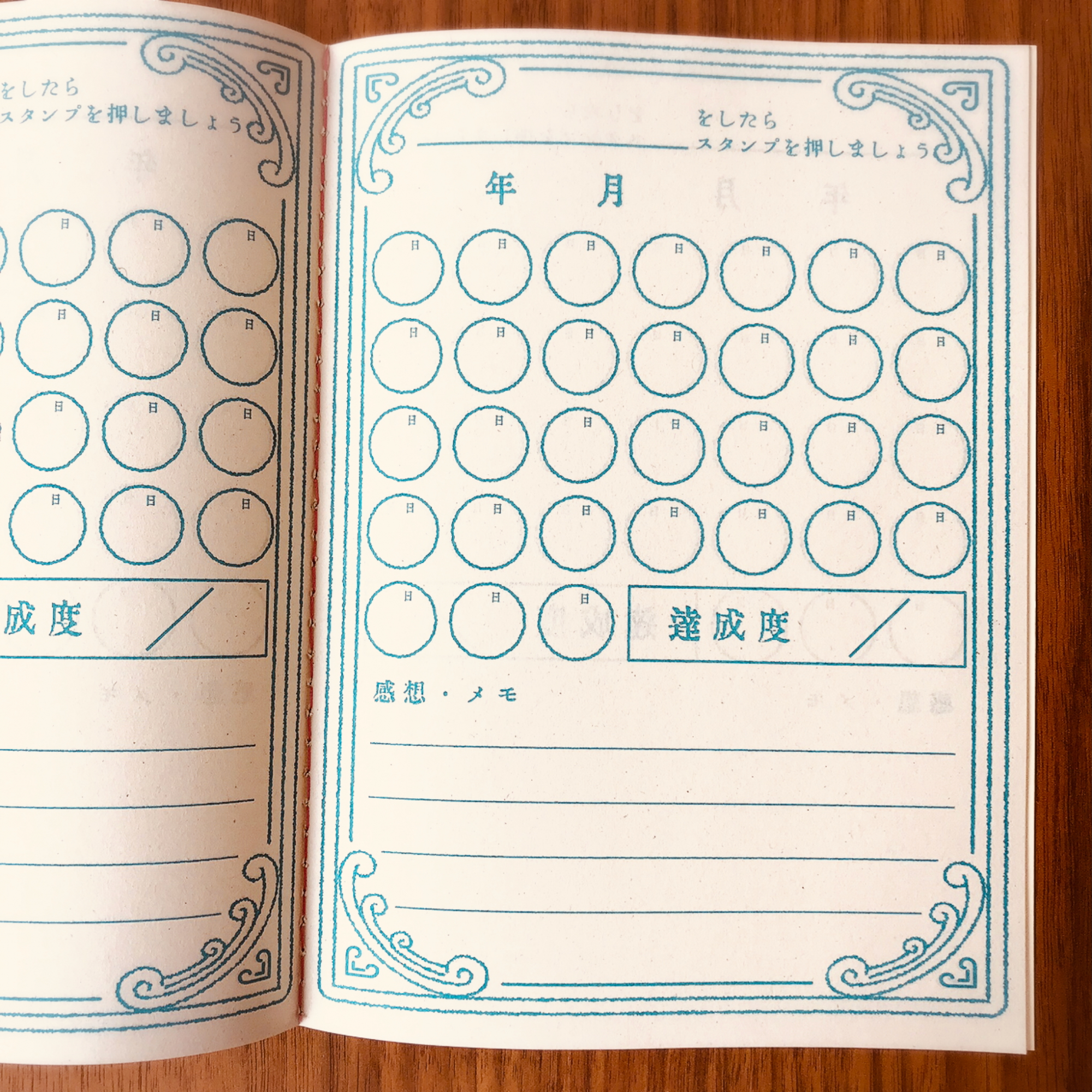 The ‘Adult Radio Exercise Card’ is a habit-tracking notebook where you set goals and stamp or sticker them each time you achieve them.