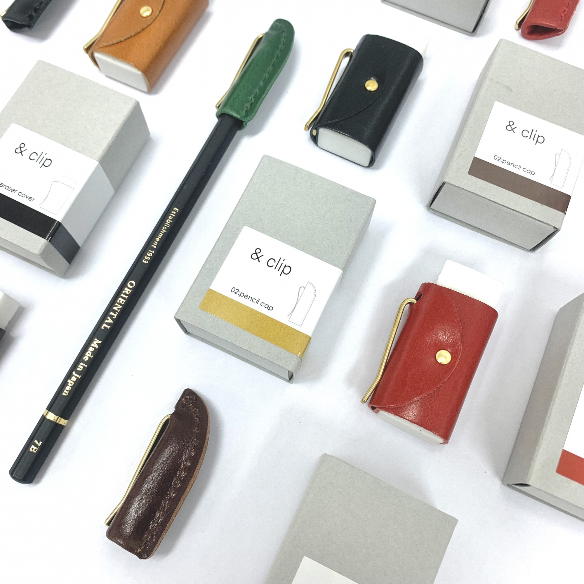 Crafted with full-grain leather and pit-tanned cowhide, along with a brass clip, this pencil cap and eraser cover are meticulously made.