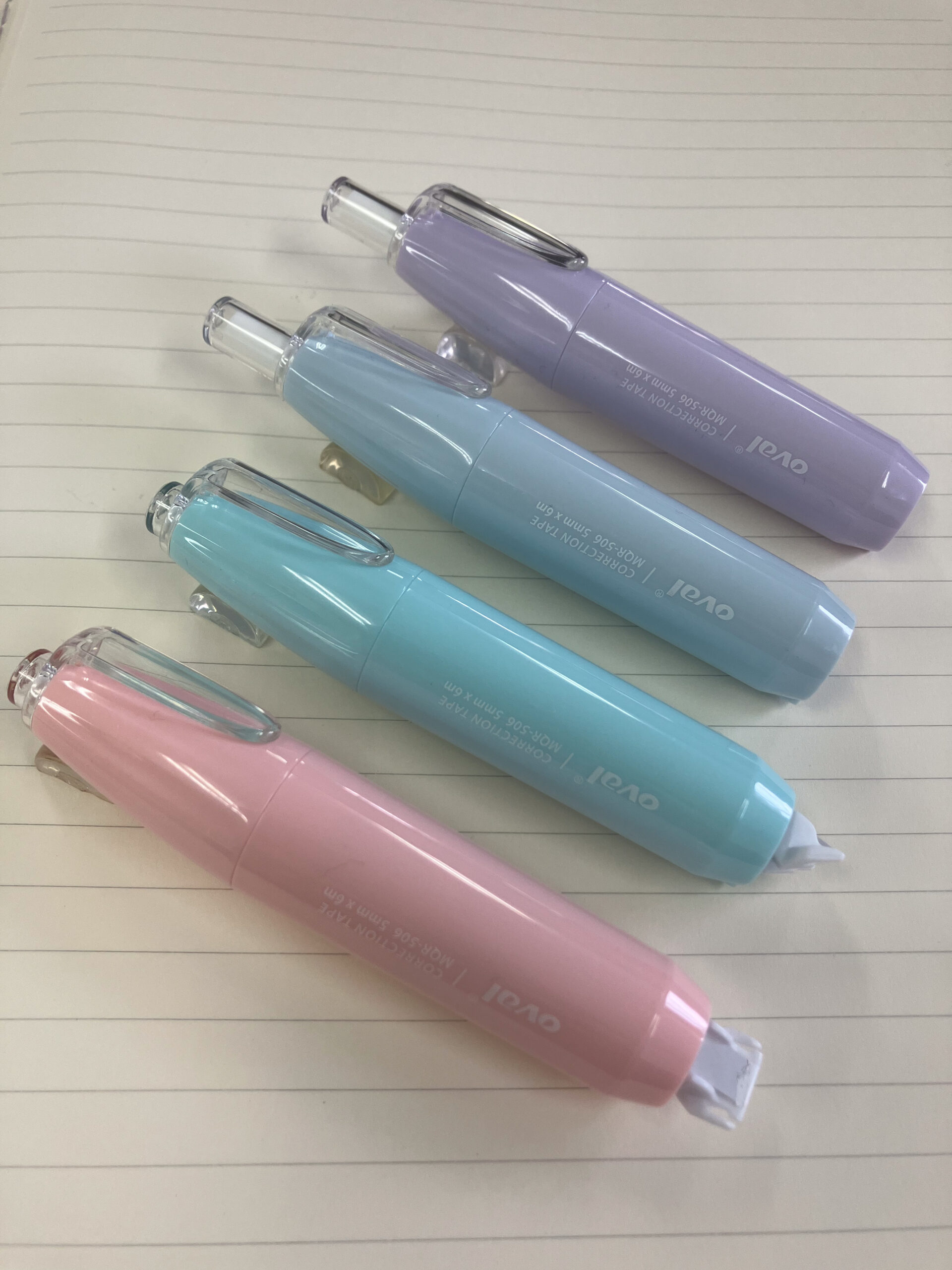We will be selling correction tape with a 360-degree rotating head in four colours.