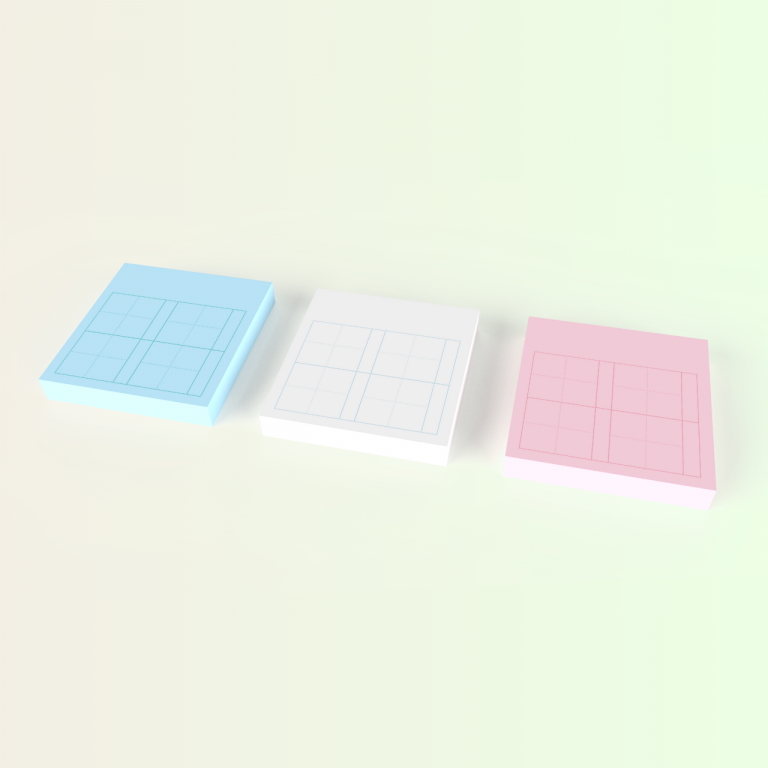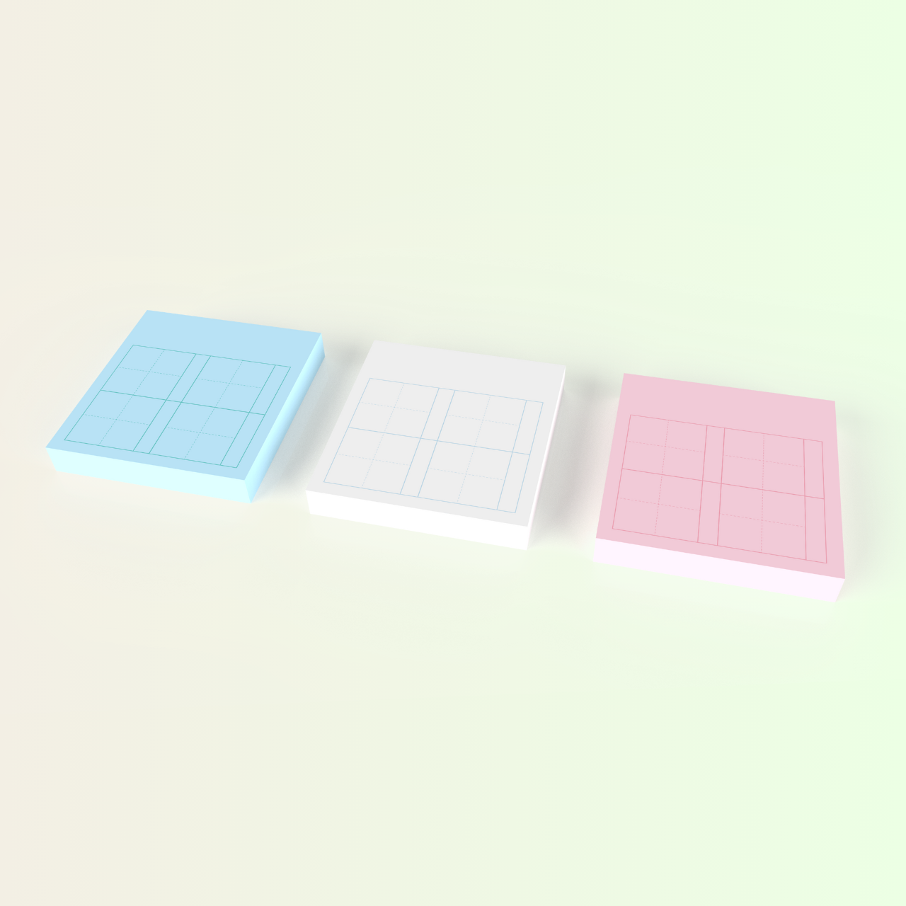 These are sticky notes with grid lines printed on them for practising kanji. The grid lines are spaced 4 mm apart, allowing for focused practice. Winner of the Japan Stationery Awards Design Category Excellence Award.