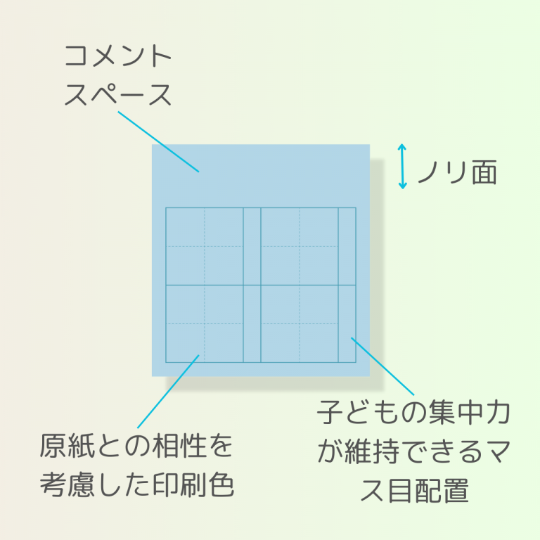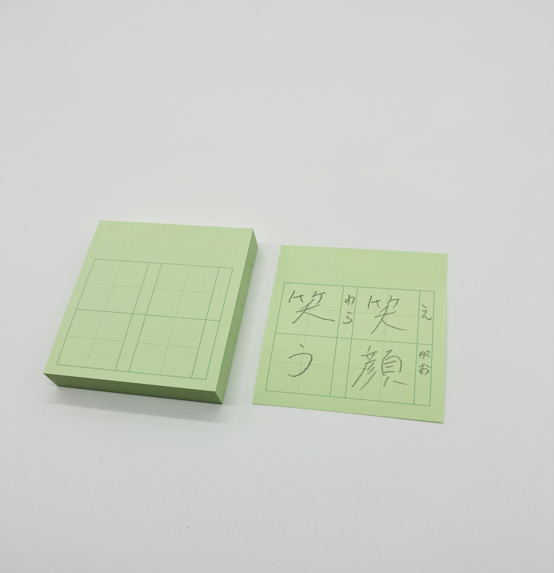 漢字練習用のマス目が印刷されたフセンです。マス目の数が4マスのため集中して取り組むことができます。日本文具大賞デザイン部門優秀賞。