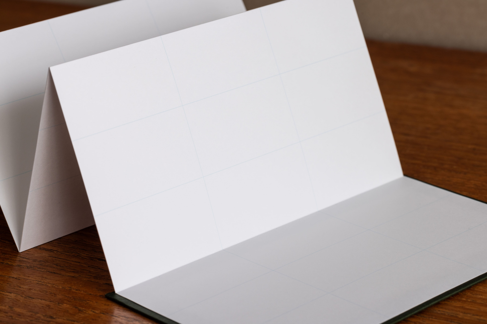 You can either take your time writing on a single page or spread your ideas across multiple pages to create a larger composition. When unfolded the notebook allows you to view your notes or sketches as a whole offering a clear bird’s-eye perspective.