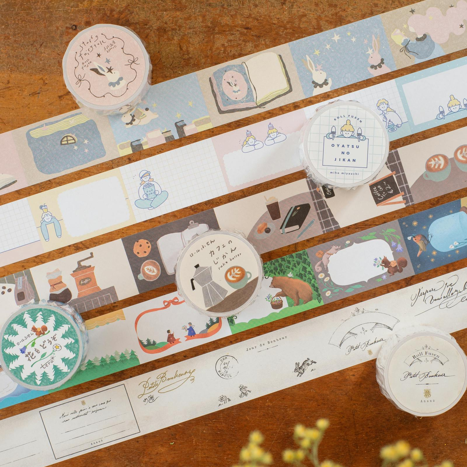 These roll-shaped post-it notes come in packs of 100 sheets, each of which can be easily torn off by hand. The back is fully adhesive, making them difficult to peel off. Available in three sizes: the classic size perfect for adding a quick note, the slim and small ‘pettit,’ and the cute square ‘mashakaku.’ Designed by creators worldwide, there are 116 varieties in total. Use them for notebook decoration, note-taking, wrapping, and more—the possibilities are endless!