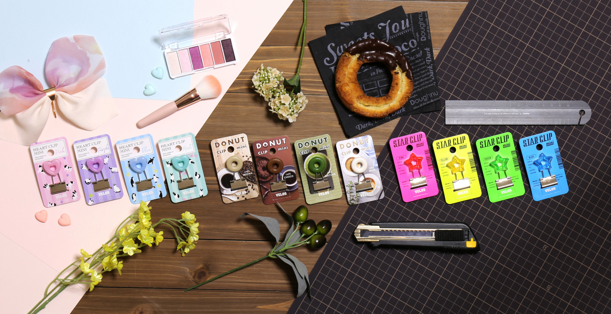 Our products include push pins, clips, pins, magnets, acrylic resin products, display accessories, and fancy goods.